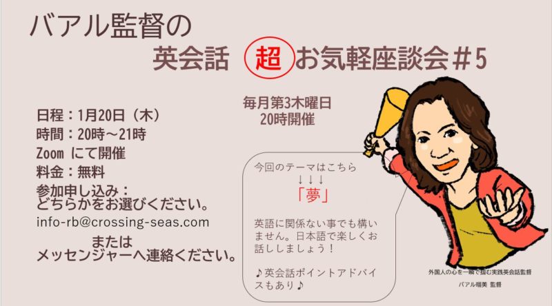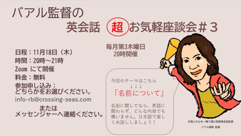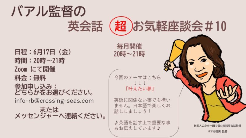毎月開催しておりますバアル監督の英会話(超)お気軽座談会。 ...